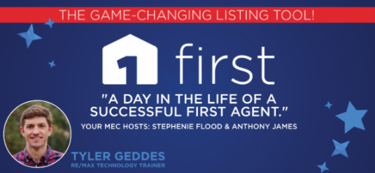 Join your MEC hosts, Stephenie Flood and Anthony James, along with Tyler Geddes, RE/MAX LLC FIRST Technology Trainer, for another informative session to learn how to use the FIRST App and fit it into your busy days with some easy steps that can be taken with just a few minutes here and there!
