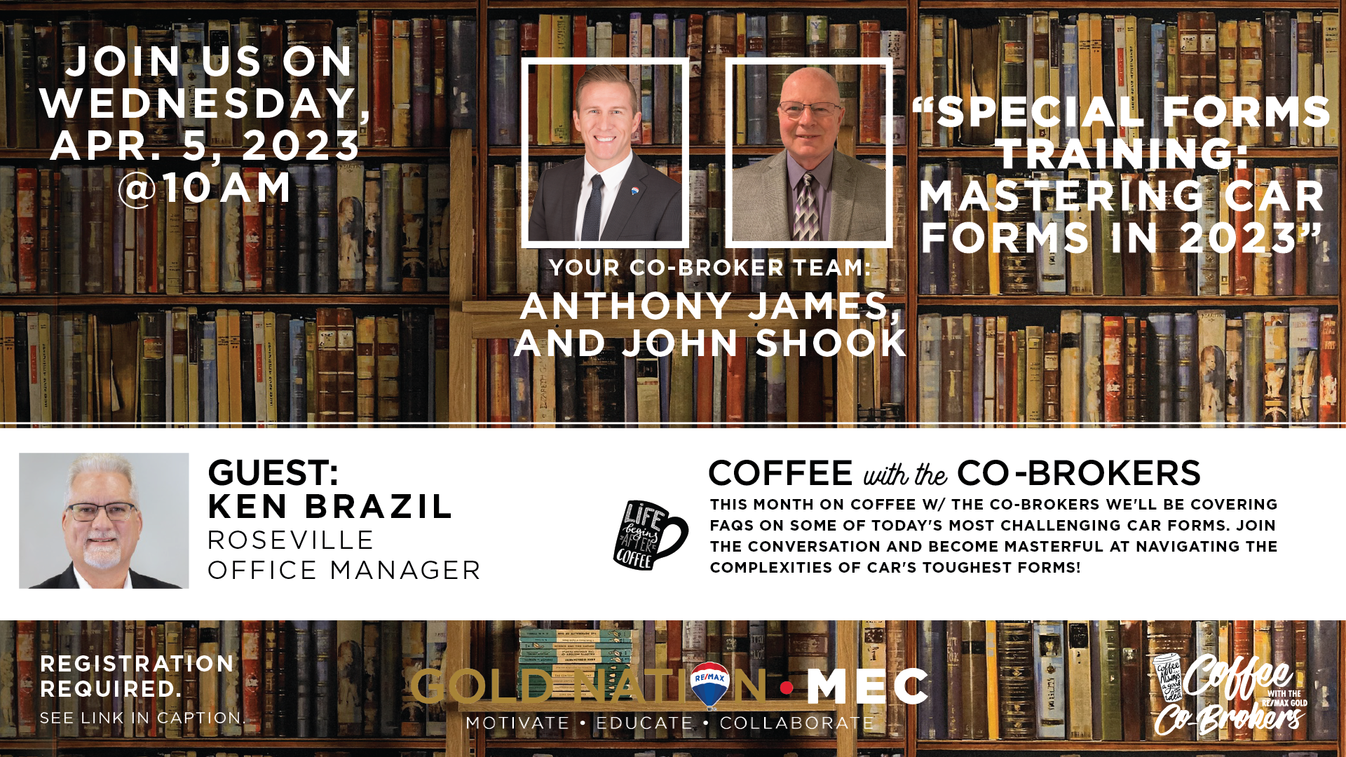 This month on Coffee w/ The Co-Brokers we'll be covering FAQs on some of today's most challenging CAR Forms. Join the conversation and become masterful at navigating the complexities of CAR's toughest forms!
