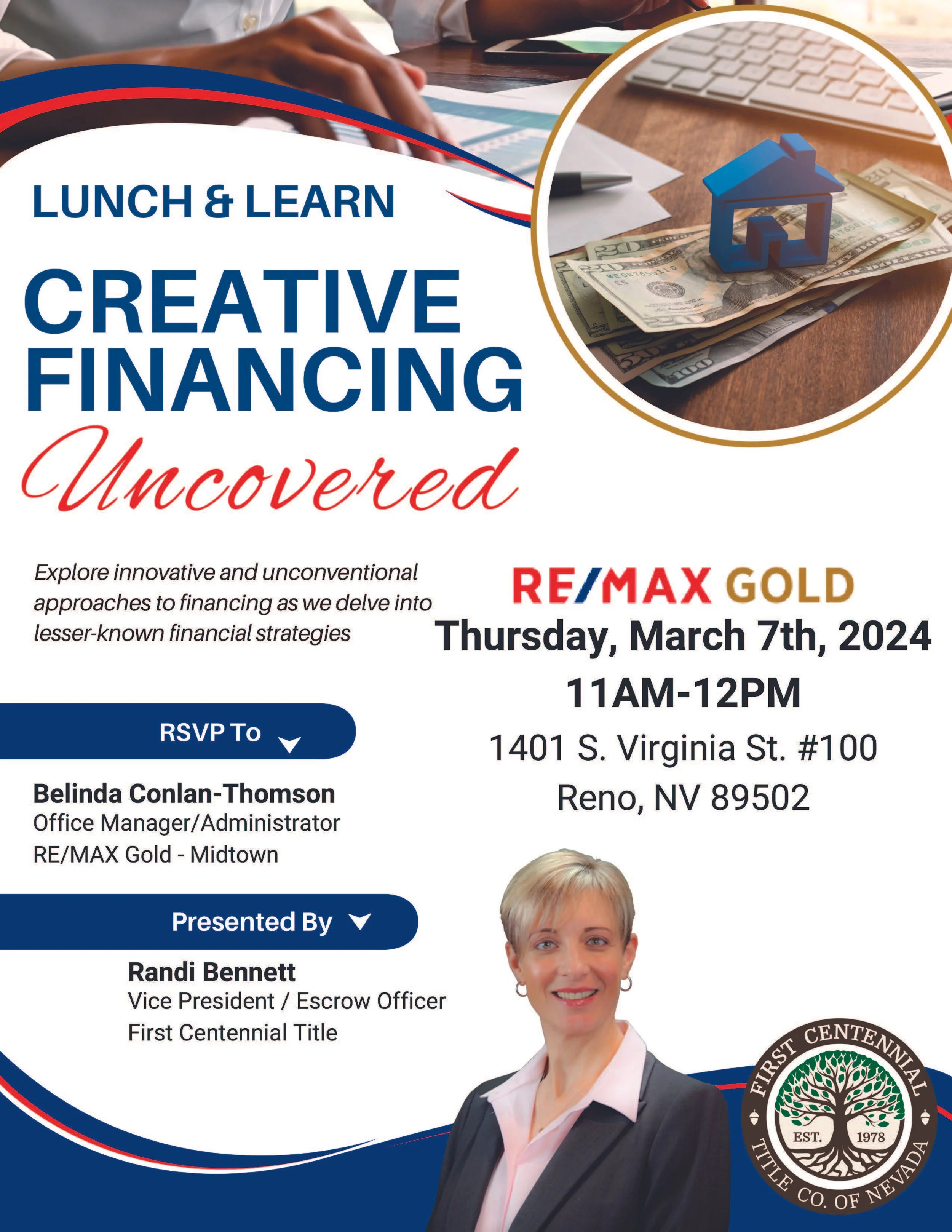 Lunch & Learn - Creative Financing Thursday, March 7, 2024 11:00 AM 12:00 PM 11:00 12:00 Gold Nation (map) Google Calendar ICS RSVP